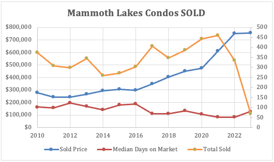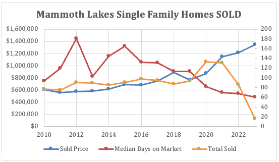 The trend of the past 6 months is finally shifting as we enter June 2023. Bottom line…there will be fewer property sales in 2023 than 2022. The sold properties will sell more quickly than earlier this year and near 2022 prices. The Mammoth Lakes real estate market can be summed up in a few key points.