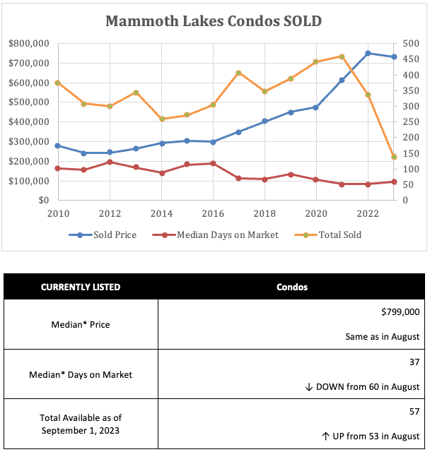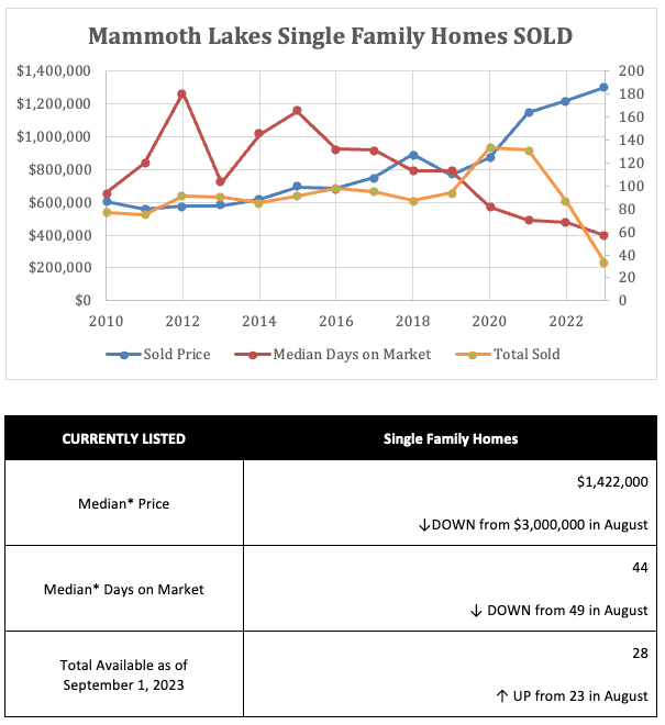 The Mammoth Lakes real estate market summary as of September 1, 2023: